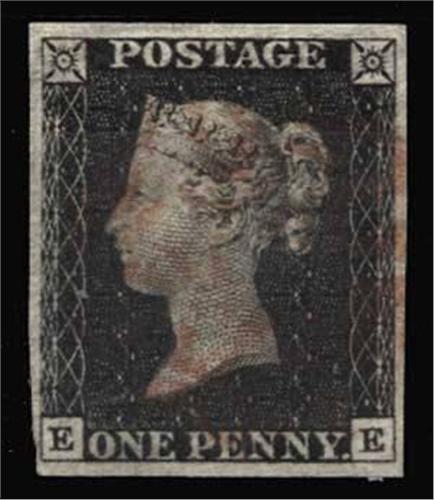 1840 1d plate 2: EE four margins light strike of red MC cancel