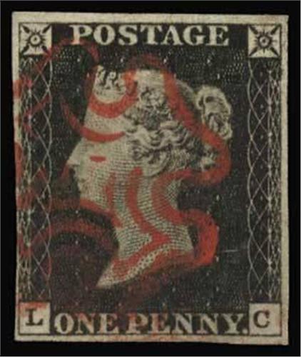 1840 1d plate 2: LC four margins with vibrant red MC cancel