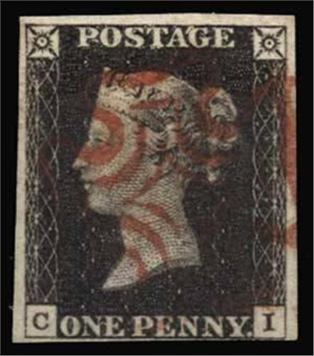 1840 1d plate 3: CI four margins red MC cancel
