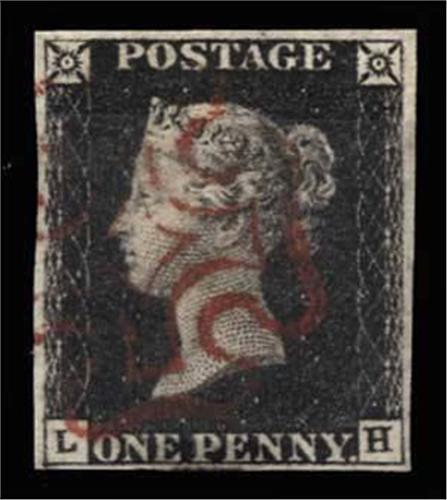1840 1d plate 4: LH four margins brownish red MC cancel
