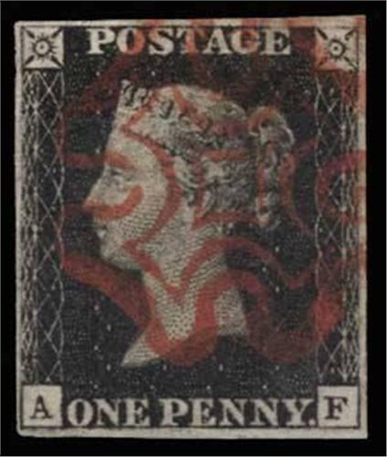 1840 1d Plate 5: AF four margins bright red MC cancel