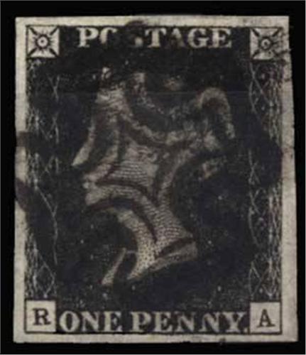 1840 1d plate 7: RA four margins good strike of black MC cancel