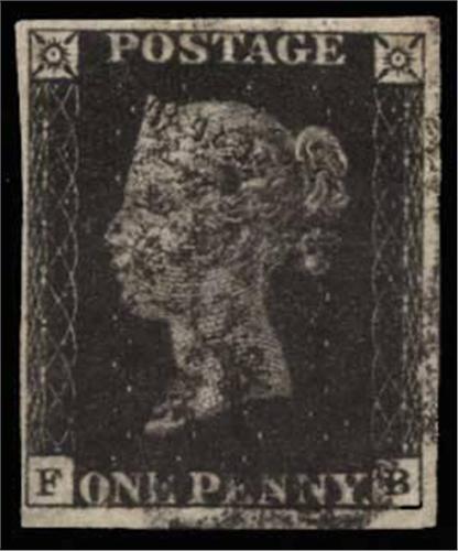 1840 1d plate 8: FB four margins smudged black cancel