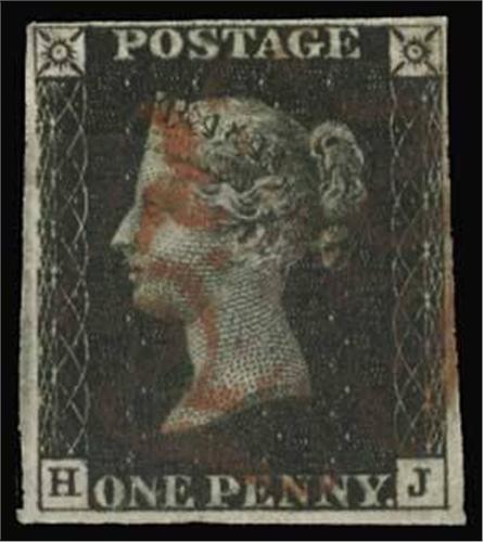 1840 1d plate 8: HJ four margins showing part of adjoining stamp at SW, red MC cancel