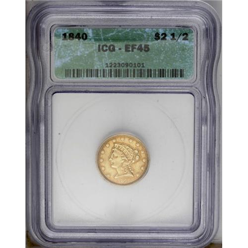 1840 $2 1/2 XF45 ICG. Always popular as a first year o 1840[$2 1/2] XF45 ICG.