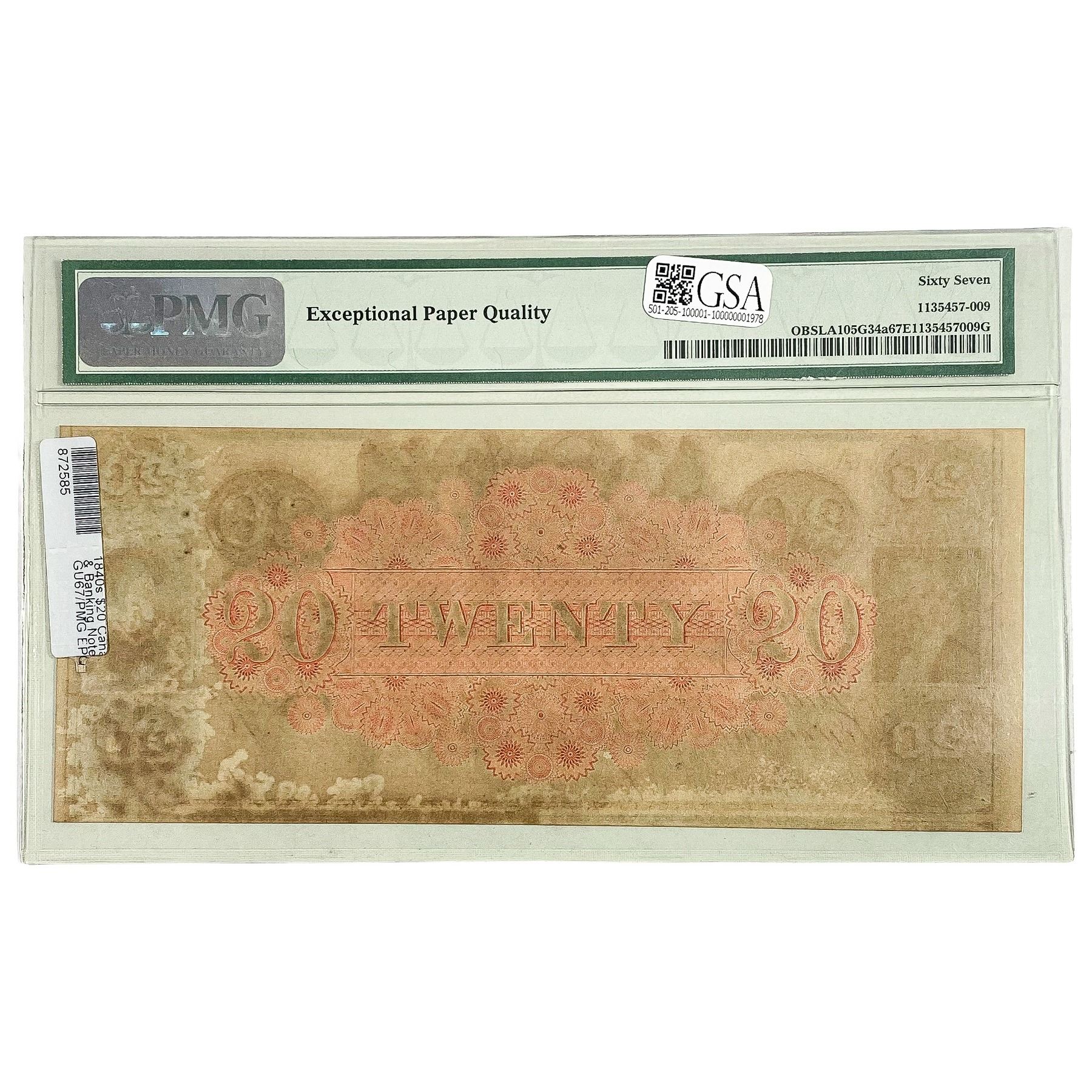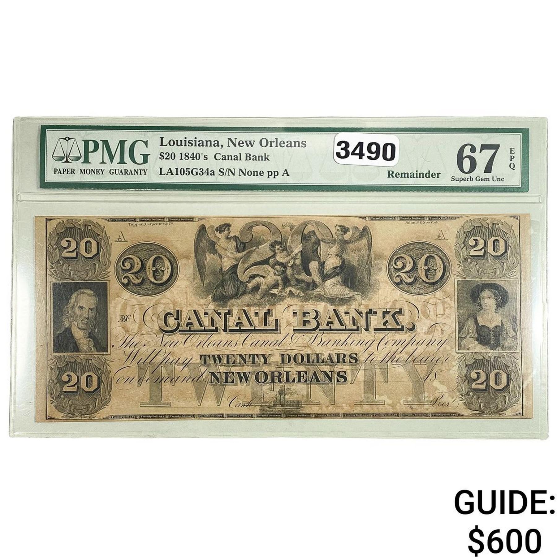 1840 $20 Canal Bank Large Note PMG Gem UNC 67