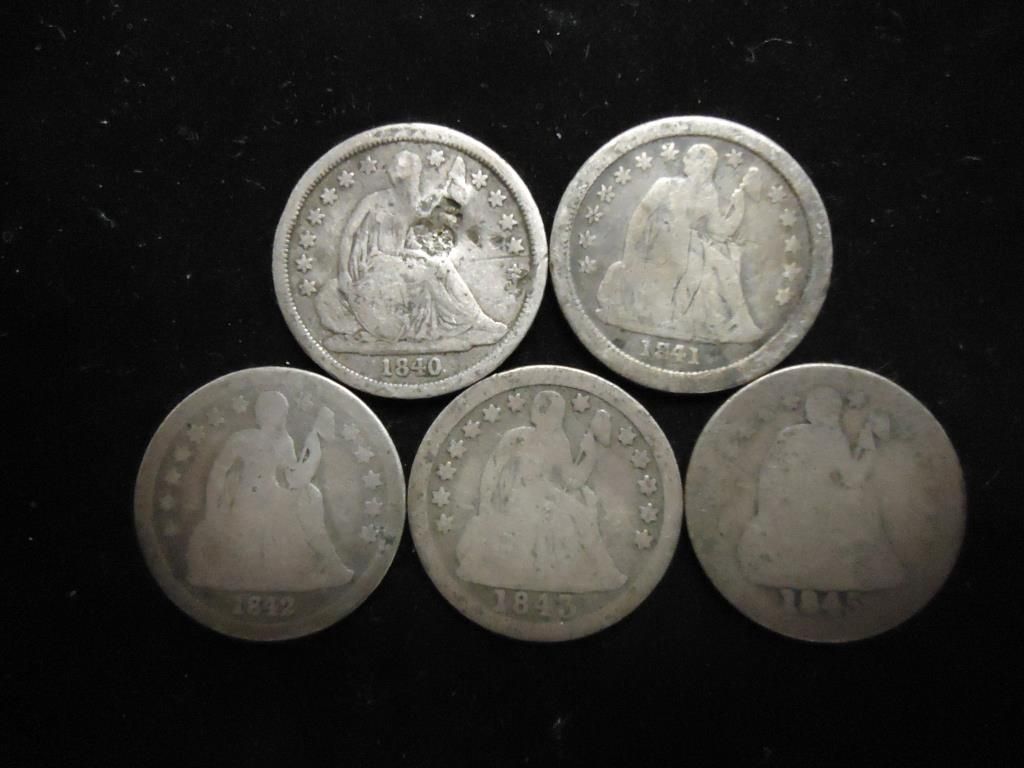 1840,41-O,42,43 & 45 SEATED LIBERTY DIMES