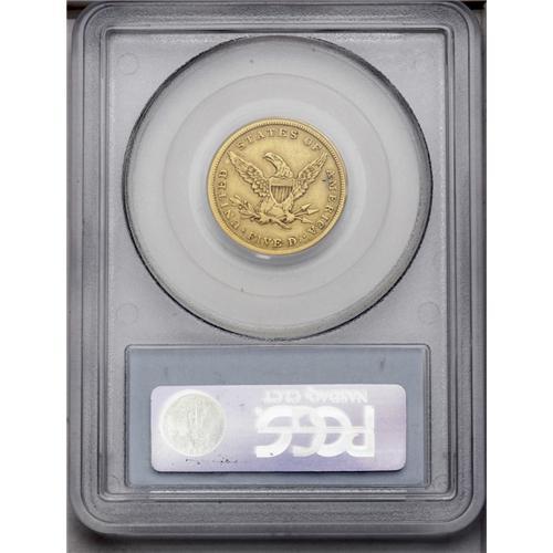 <B>1840<$5> Narrow Mill XF45 PCGS.</B></I> About one-third to one-half of the original mint luster still clings to this piece. The obverse strike is decent, although on the reverse the eagle's claws, the fletchings, and lower legs show both wear and a weak strike. Abrasions are moderate, although a scrape through star 2 has removed one of its points. Population: 32 in 45, 73 finer (4/06).