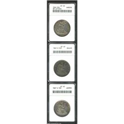1840 50C Reverse of 1839 XF45 ANACS, the light gray centers are surrounded by deep golden and blue peripheral coloration; 1861-O XF45 ANACS, deeply toned; and an 1867-S XF45 ANACS, moderately toned.From the Ohio Collection. 3 coins Important notice: We expect to be auctioning lots at the rate of 200-250 per hour. Sometimes eBay Premier live bid software cannot keep up with that pace, so we strongly recommend that you place a realistic proxy bid now as insurance to avoid disappointment. Also please note that all Heritage/CAA lots purchased through eBay Premier carry a 20% Buyer's Premium. Please make sure you read the Terms and Conditions.