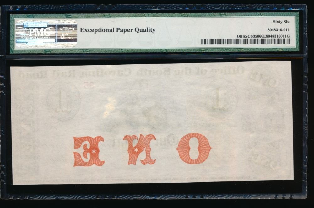 One 1840-70's $1 Charleston SC Obsolete PMG 66EPQ.