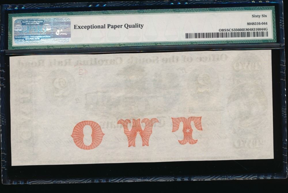 One 1840-70's $2 Charleston SC PMG 66EPQ.
