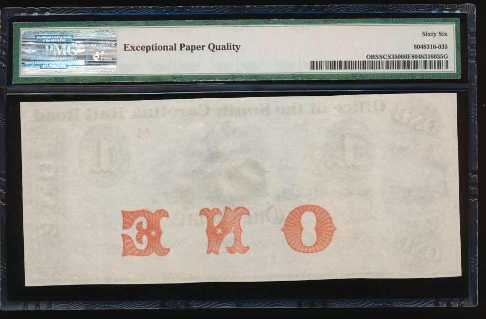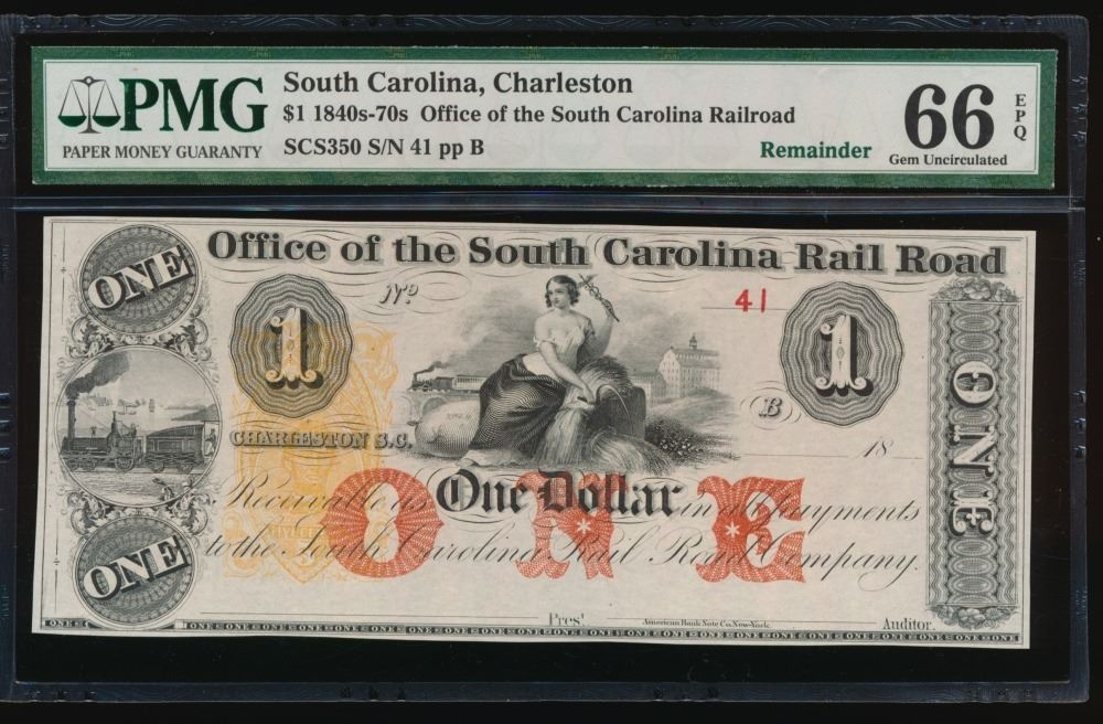 One 1840-70s $1 Charleston SC Obsolete Note PMG 66EPQ.