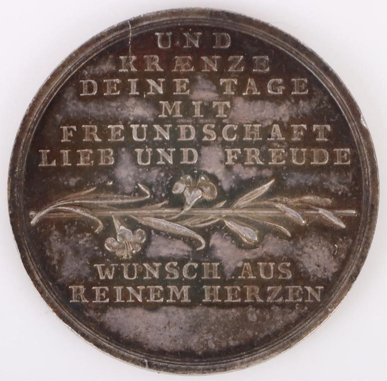 1840 Bereavement Medal Loos Company Mint to include the inscription "DIEN GUTER ENGEL SEY DIR STETS ZUR SEITE," meaning "May your good angel always be by your side," on the obverse side of the medal.