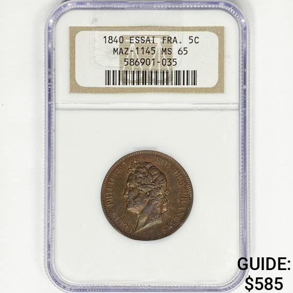 1840 Bronze Essai France 5C NGC MS65