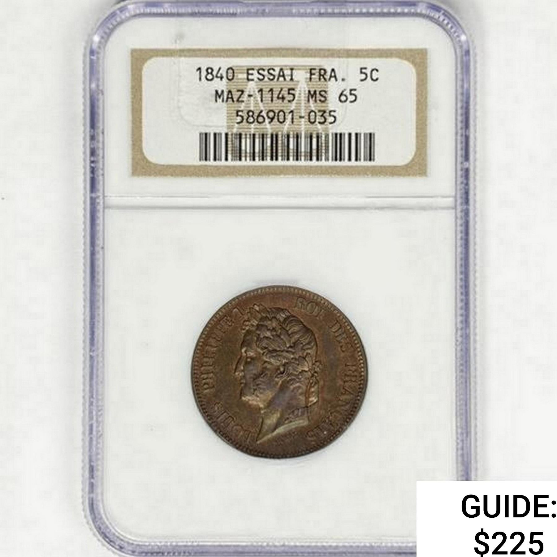 1840 Bronze Essai France 5C NGC MS65