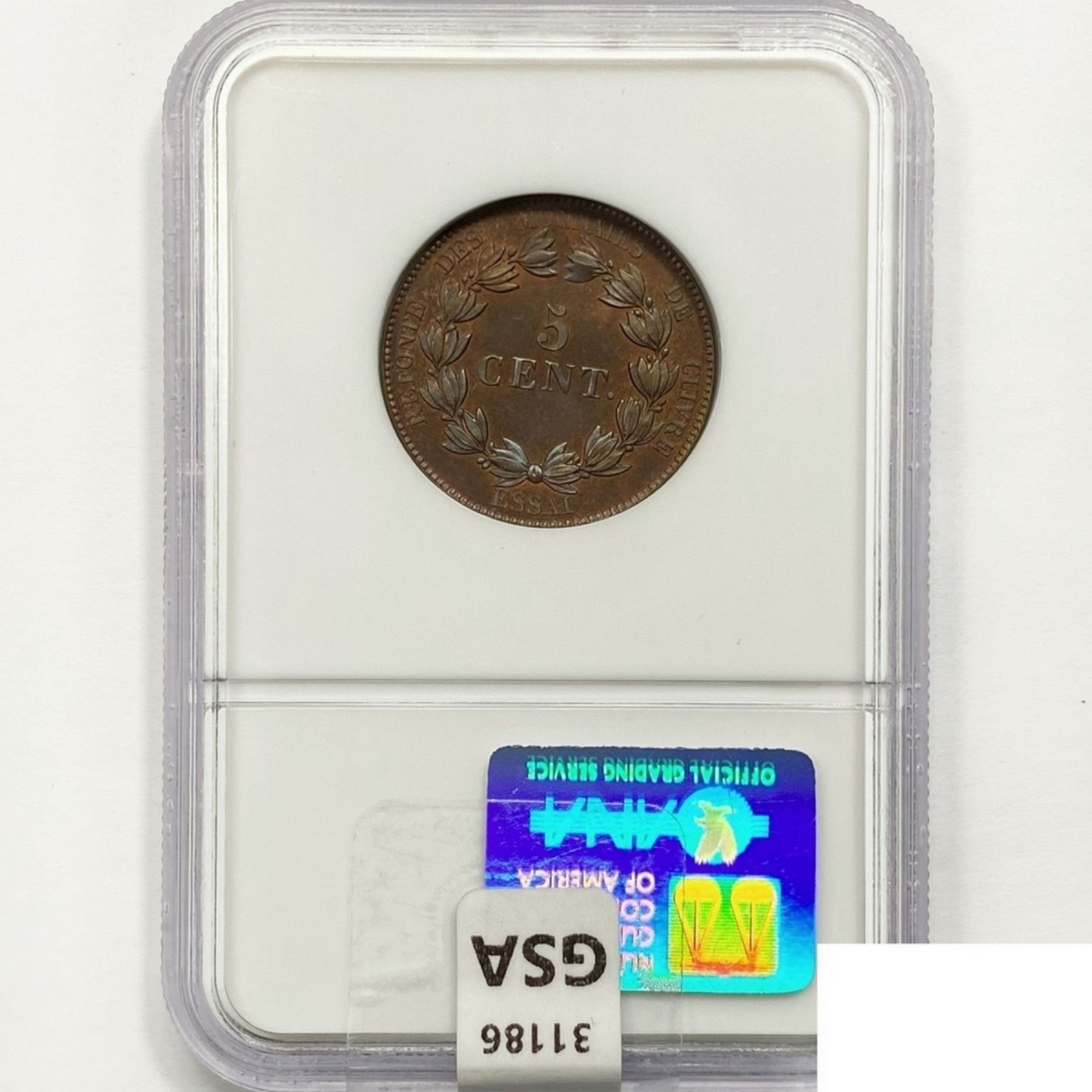 COINS AND CURRENCY LISTED IN GSA’S CATALOG AS GRADED AND ENCAPSULATED BY PCGS, NGC, ANACS, ICG, PCGS CURRENCY, PMG, PCGS BANKNOTE GRADING, CMC OR ANY OTHER THIRD-PARTY GRADING SERVICE ARE LIKEWISE SOLD “AS-IS” EXCEPT AS EXPRESSLY SET FORTH HEREIN. ALL THIRD-PARTY GRADING SERVICE GUARANTEES, INCLUDING AUTHENTICITY, ARE THE SOLE RESPONSIBILITY OF THE THIRD-PARTY GRADING SERVICE AND NOT WARRANTIES OR GUARANTEES OF GSA. BIDDERS SHOULD CONTACT THESE THIRD-PARTY GRADING SERVICES DIRECTLY WITH RESPECT TO ANY CLAIMS OR QUESTIONS THEY MAY HAVE CONCERNING THEIR GUARANTEES AND WARRANTIES. BIDDERS ACKNOWLEDGE AND AGREE THAT AUCTIONEER IS NOT BOUND BY OR LIABLE FOR ANY OPINION OR CERTIFICATION BY ANY THIRD-PARTY GRADING SERVICE. REMOVAL OF A PRODUCT FROM ITS PROTECTIVE CASING OR HOLDER OR ALTERATION OF ANY COIN HOLDER WAIVES ALL RIGHTS CONCERNING THE PRODUCT CONTAINED THEREIN.