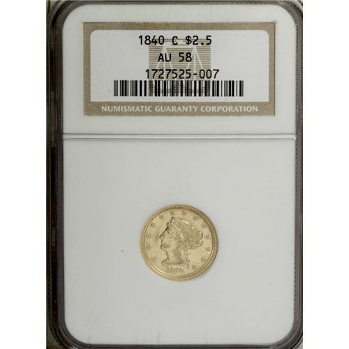 1840-C $2 1/2 AU58 NGC. A popular issue, not only for