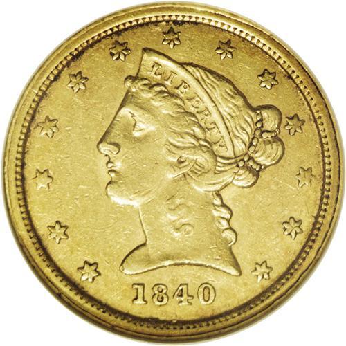 1840-C $5 AU55 NGC. Variety 2-B, Die State I. Average