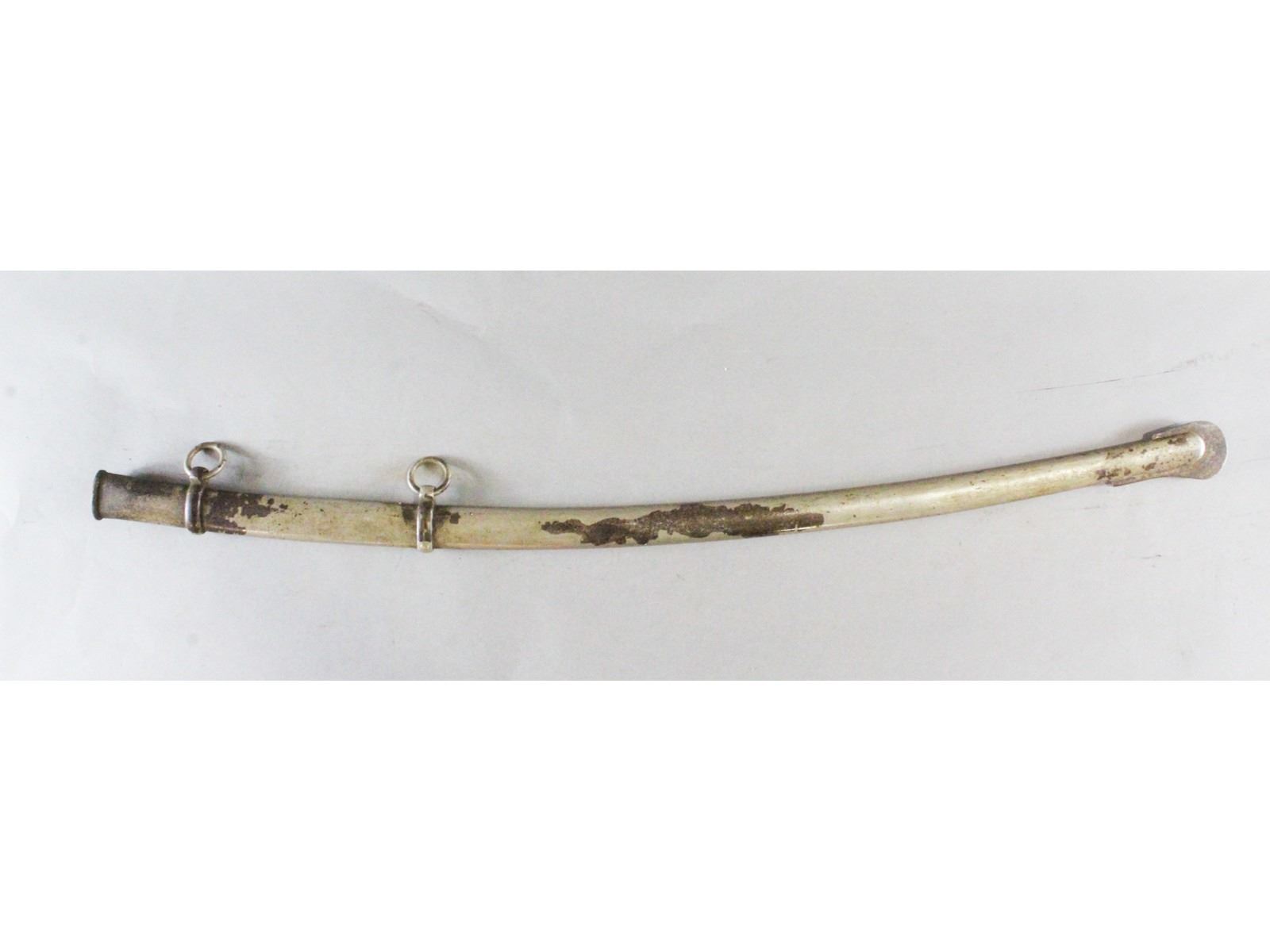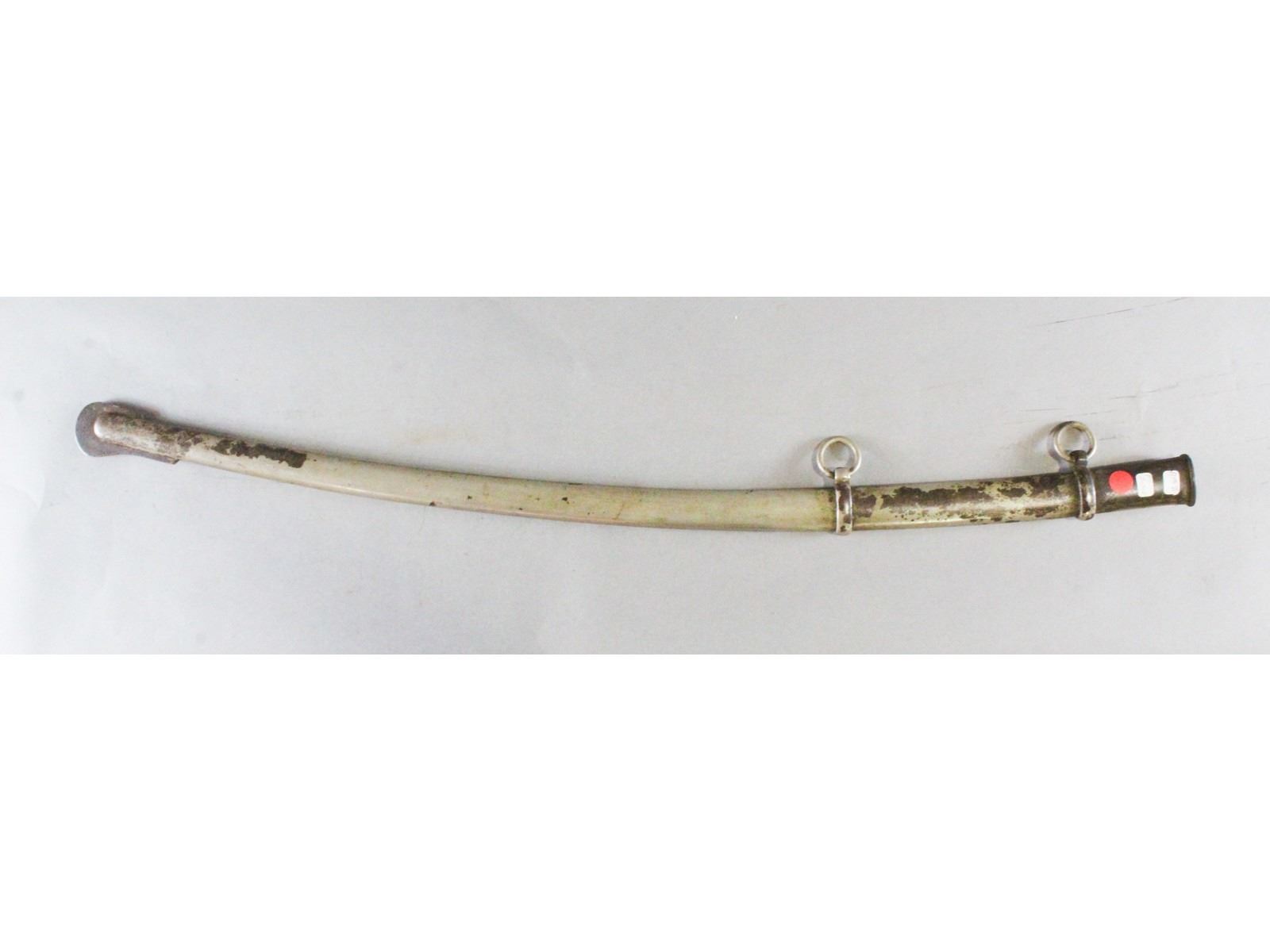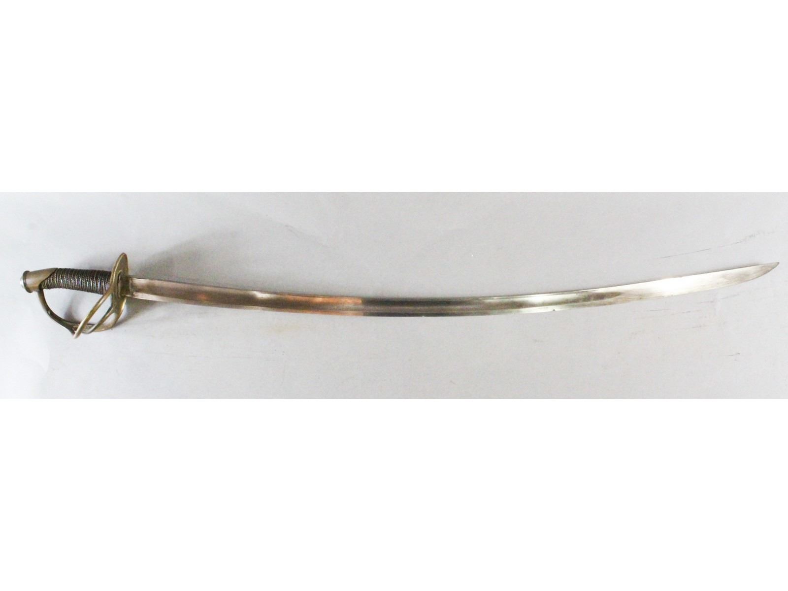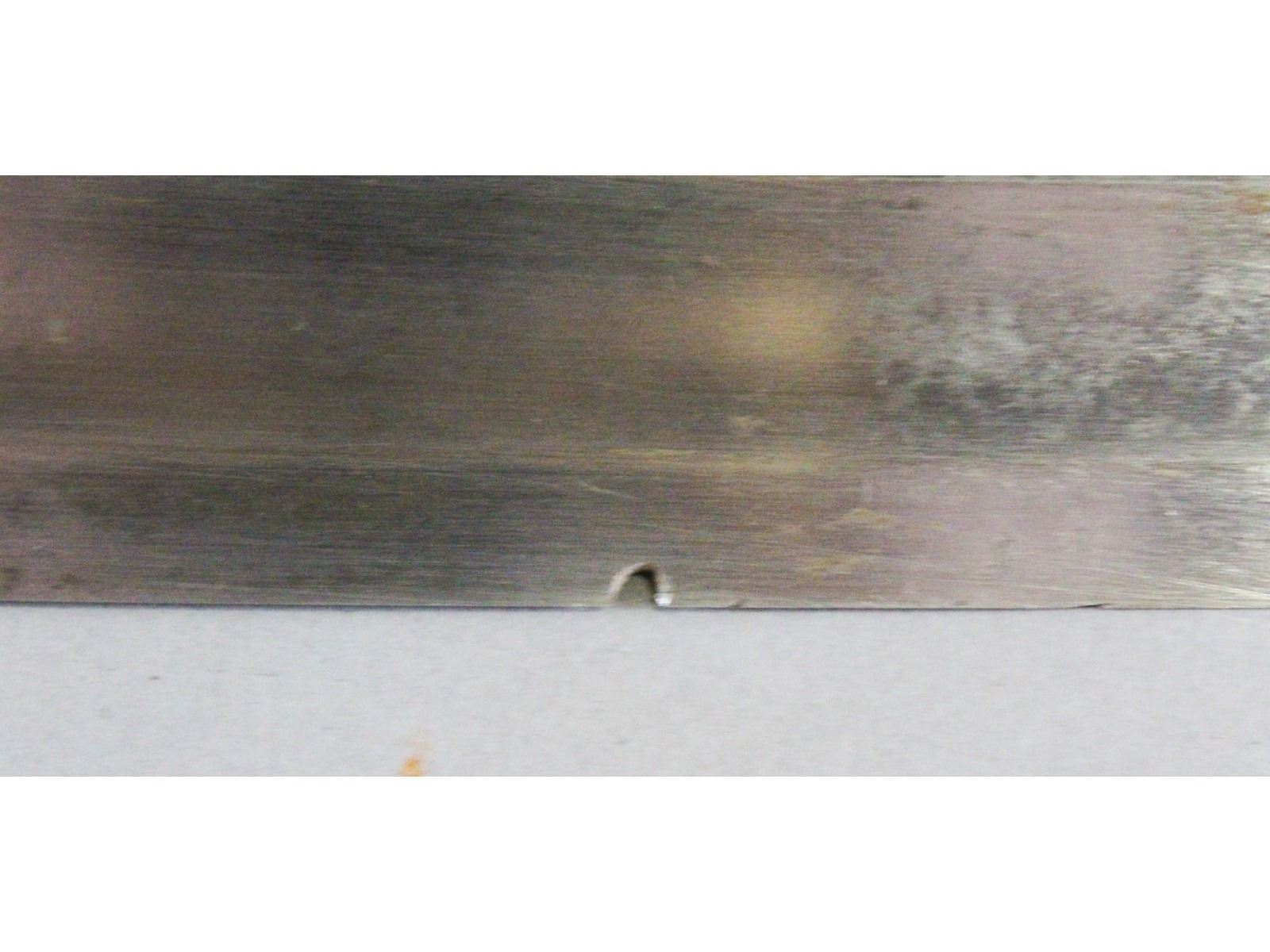 PS Justice, Philadelphia Blade may have been cleaned. Has a couple small nicks. Leather and wire grip is good. Scabbard has no dents but may have been replated at some point.