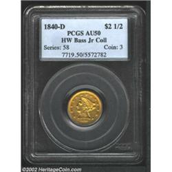 1840-D $2 1/2 AU50 PCGS. Ex: Bass. Winter 1-A. The 1840-D is an important issue as it is the first L