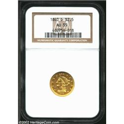 1840-D $2 1/2 AU55 NGC. Winter 1-A. The 1840-D is tied for the third rarest quarter eagle from this.