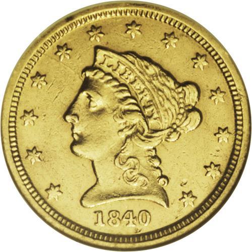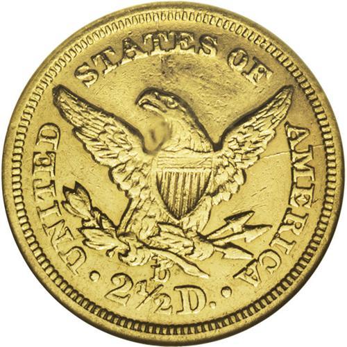 <B>1840-D $2 1/2 --Repaired, Cleaned--ANACS. AU55 Details.</B></I> Variety 1-A. This example is repaired on the reverse field beneath TES OF, and is slightly granular from a chemical cleaning. Sharply struck aside from the eagle's shield, and the subdued straw-gold surfaces exhibit partial luster.<BR><BR><b>Shipping:</b> Coin/Currency (<a target="_blank" href="http://www.heritageauctions.com/common/shipping.php">view shipping information</a>)