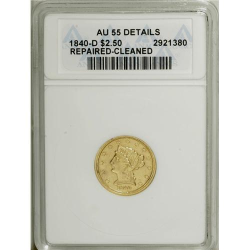 1840-D $2 1/2 --Repaired, Cleaned--ANACS. AU55 Details.