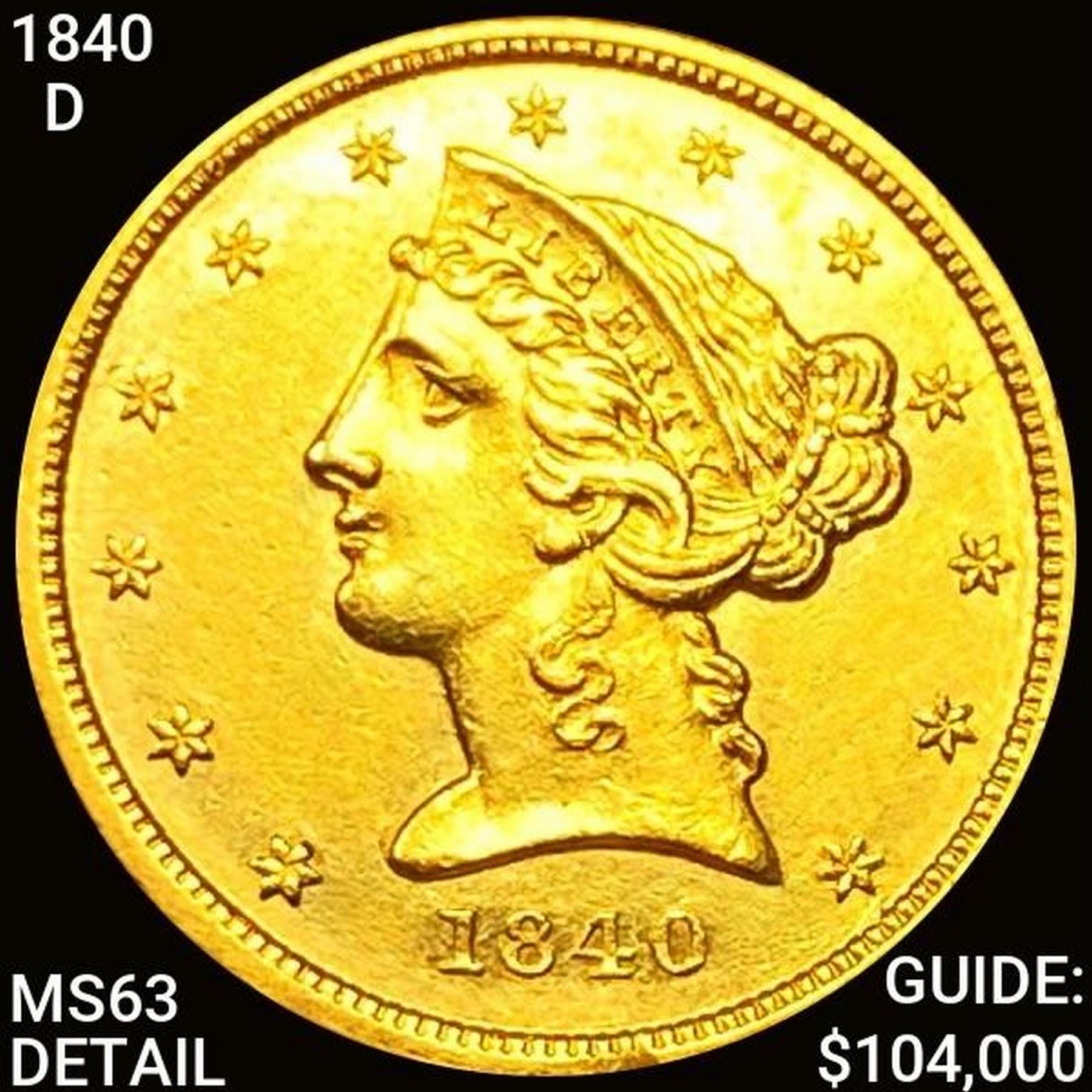 1840-D $5 Gold Half Eagle CHOICE BU DETAIL