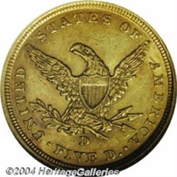 <table><tbody><tr><td><table> <TR><TD width="100%"><TABLE cellSpacing=1 cellPadding=3 width="100%" border=0><TBODY><TR><TD width="100%" bgColor=#79735c><FONT face=arial color=#ffffff size=3><B>Description</B> </FONT></TD></TR><TR><TD width="100%" bgColor=#ffffff><FONT face=arial size=2><B>1840-D $5 Narrow Mill MS60 NGC.</B></I> The 1840-D is an important first-year issue that is very underrated in high grades. The design of Liberty was modified slightly in 1840 to the design it would retain until 1908. However, in this first year two diameters were used. This is the more frequently encountered Narrow Rim variant. Only 85-95 pieces are known today in all grades out of the original mintage of 22,896 pieces. A mere 11 Mint State coins are currently known at NGC and PCGS, not counting resubmissions. The current example is well struck, with the hair curl below the ear of Liberty showing a good deal of definition. The original color is predominantly a dusky green-gold hue, with red-orange accents near the obverse center. The surfaces lack the often-seen planchet laminations that are so often encountered. Both obverse and reverse are peppered with numerous small abrasions that account for the grade, the most obvious of which are a small abrasion above the 8 in the date, and a field mark on the left reverse. </FONT></TD></TR></TBODY></TABLE></TD></TR></TBODY></TABLE><BR><A name=PricesRealized></A><TABLE cellSpacing=0 cellPadding=0 width="100%" bgColor=#000000 border=0><TBODY><TR><TD width="100%"><TABLE cellSpacing=1 cellPadding=3 width="100%" border=0><TBODY><TR><TD width="100%" bgColor=#79735c><A name=PR><FONT face=arial color=#ffffff size=3><B>Previous Prices from Heritage Auctions</B> </FONT></A></TD></TR><TR><TD bgColor=#f6f6ed>No Prior Data Recorded </TD></TR><TR><TD bgColor=#ffffff><FONT face=arial size=1 ?>PLEASE NOTE: All prices realized reflect the final hammer price PLUS the buyer's premium in auctions that charge a buyer's premium. Each item has a notation at the top of the listing indicating whether that lot included a buyer's premium. Example: A item that sells with a final hammer price of $100 and a 20% buyer's premium will display with a price realized of $120. All information listed is intended to be as accurate as possible, but errors are possible. Please use this guide carefully and inform us of any inaccuracies. </FONT></TD></TR></TBODY></TABLE></TD></TR></TBODY></TABLE><BR><TABLE cellSpacing=0 cellPadding=0 width="100%" bgColor=#000000 border=0><TBODY><TR><TD width="100%"><TABLE cellSpacing=1 cellPadding=3 width="100%" border=0><TBODY><TR><TD width="100%" bgColor=#79735c colSpan=6><FONT face=arial color=#ffffff size=3><B>Price Guide*</B> </FONT></TD></TR><TR bgColor=#f6f6ed><TD align=middle><B>Grade</B> </TD><TD align=middle><B>Coin World<BR>(Trends)</B> </TD><TD align=middle><B>Numismedia<BR>Retail</B> </TD><TD align=middle><B>Numismedia<BR>Wholesale</B> </TD><TD align=middle><B>Coin<BR>Universe</B> </TD><TD align=middle><B>Heritage<BR>Value Index</B> </TD></TR><TR bgColor=#ffffff><TD align=middle>58</TD><TD align=right>$12,000.00</TD><TD align=right>---</TD><TD align=right>$10,775.00</TD><TD align=right>---</TD><TD align=right>$7,461.67</TD></TR><TR style="FONT-WEIGHT: bold" bgColor=#cccfdd><TD align=middle>60</TD><TD align=right>$18,000.00</TD><TD align=right>---</TD><TD align=right>$12,250.00</TD><TD align=right>$14,500.00</TD><TD align=right>$10,733.33</TD></TR><TR bgColor=#ffffff><TD align=middle>61</TD><TD align=right>---</TD><TD align=right>---</TD><TD align=right>$12,750.00</TD><TD align=right>$18,500.00</TD><TD align=right>$12,514.17</TD></TR><TR bgColor=#ffffff><TD colSpan=6><FONT size=1>*All information listed is intended to be as accurate as possible, but errors are possible. No item may be returned or refused based on this information which is provided as a service to our customers. You should contact each pricing source directly to determine the accuracy of this information. </FONT></TD></TR></TBODY></TABLE></TD></TR></TBODY></TABLE><BR><TABLE cellSpacing=0 cellPadding=0 width="100%" bgColor=#000000 border=0><TBODY><TR><TD width="100%"><TABLE cellSpacing=1 cellPadding=3 width="100%" border=0><TBODY><TR><TD width="100%" bgColor=#79735c><FONT face=arial color=#ffffff size=3><B>Population Guide</B> </FONT></TD></TR><TR bgColor=#ffffff><TD align=middle><!-- Begin Output of Population Grid--><TABLE cellSpacing=0 cellPadding=0 width="100%" border=0><TBODY><TR><TD vAlign=center><TABLE cellSpacing=0 width="100%" border=1 cellsadding="3"><TBODY><TR><TD vAlign=center><TABLE cellSpacing=0 cellPadding=3 width="100%" border=1><TBODY><TR><TD vAlign=center align=middle bgColor=#f0f1e8 colSpan=2 <CENTER><FONT face=Arial size=2><B>PCGS Pop </B></FONT><CENTER></CENTER></TD><TD vAlign=center align=middle bgColor=#f0f1e8 colSpan=2><CENTER><FONT face=Arial size=2><B>NGC Pop</B></CENTER></FONT></TD></TR><TR><TD vAlign=center><FONT face=Arial size=2>(60)</FONT> </TD><TD vAlign=center align=right><FONT face=Arial size=2>0</FONT> </TD><TD vAlign=center><FONT face=Arial size=2>(60)</FONT> </TD><TD vAlign=center align=right><FONT face=Arial size=2>2</FONT> </TD></TR><TR><TD vAlign=center><FONT face=Arial size=2>(>60)</FONT> </TD><TD vAlign=center align=right><FONT face=Arial size=2>5</FONT> </TD><TD vAlign=center><FONT face=Arial size=2>(>60)</FONT> </TD><TD vAlign=center align=right><FONT face=Arial size=2>4</FONT> </TD></TR></TBODY></TABLE></TD></TR></TBODY></TABLE></TD></TR></TBODY></TABLE><!-- End Output of Population Grid--></TD></TR></TBODY></TABLE></TD></TR></TBODY></TABLE><BR><TABLE cellSpacing=0 cellPadding=0 width="100%" bgColor=#000000 border=0><TBODY><TR> <font color='#000000'><span style='background-color: #FFFFFF'><td bgcolor='#FFFFFE'> Important notice: Heritage usually auctions material at the rate of 200-250 lots per hour. On some occasions eBay Live bid software or the Internet may not be able to keep up with the pace of the auction. We recommend placing a realistic abs