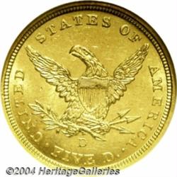 <table><tr><td><table><tr><td>1840-D $5 Narrow Mill MS63 NGC. Variety 3-B. The 1840-D half eagle is a significant issue as it is the first Dahlonega five with the new, modified head of Liberty--a type that would last long after the Dahlonega mint was gone and until the end of the series in 1908. It is also the first year the D mintmark was placed on the reverse, where it would stay until the end of the half eagle series. This is an important coin that should be closely examined by specialists as it seems to have been overlooked on the current Condition Census. It is definitely not the Green Pond coin, nor is it the Ex: Numisma '95 piece. The surfaces display even green-gold coloration that is typically found on high grade, original examples of this issue. It is believed that some 120-140 pieces are known today in all grades with a mere 5-7 coins in mint condition. The striking details are uncommonly strong with no areas of weakness on either side. Abrasions are also held to a minimum with the most obvious ones that could be used for pedigree purposes being a scrape on the upper portion of Liberty's neck, and a tiny cut across one of the denticles below star 1. <BR><BR><B>Important notice:</B> Heritage usually auctions material at the rate of 200-250 lots per hour. On some occasions eBay Live bid software or the Internet may not be able to keep up with the pace of the auction. We recommend placing a realistic absentee bid now as insurance to avoid disappointment. Occasionally the auctioneer may eliminate or reject an eBay Live bid, and the auctioneer may also reopen a lot after the close of the eBay live bidding (usually because we missed an audience bid), and may reject your bid even if it shows you as the winning bidder. By bidding via eBay Live, you agree that Heritage may award the lot to another bidder at its sole discretion under the circumstances described above or any other reasonable circumstances. Since eBay bids are not shown to us until we open the lot on the floor, we treat those bids just like floor bids. In most cases the floor responds before the eBay bid is presented to us, due to Internet lag time, so for consistency we have made it a policy that floor bids are always considered first over tie eBay live bids. Also please note that all Heritage lots purchased through eBay Live carry a 20% Buyer's Premium. Please make sure you read the Terms and Conditions before you bid. <BR><BR><B>IMPORTANT ANNOUNCEMENT ABOUT RESERVES:</B> Heritage now divulges all reserves on its web site 7 days before every auction. If you want to know whether the reserve on this lot has been met, and if not, what the reserve amount is, please visit this lot page on the HeritageCoin.com web site, or email: bid@HeritageGalleries.com </span></font></td></tr></table></td></tr></table>