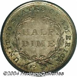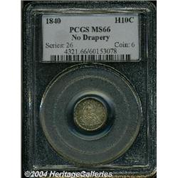 <B>1840<H10C> No Drapery MS66 PCGS.</B></I> Golden-brown, aquamarine, and dove-gray colors endow this lustrous premium Gem. Generally well struck, only a small portion of the right border on each side does not deliver the full design. Thorough examination under a glass does not reveal the faintest distraction. An exceptional representative of the short-lived type that possesses obverse stars, but does not have drapery below Liberty's raised elbow. Population: 7 in 66, 6 finer (9/04). <BR><BR><B>Important notice:</B> Heritage usually auctions material at the rate of 200-250 lots per hour. On some occasions eBay Live bid software or the Internet may not be able to keep up with the pace of the auction. We recommend placing a realistic absentee bid now as insurance to avoid disappointment. Occasionally the auctioneer may eliminate or reject an eBay Live bid, and the auctioneer may also reopen a lot after the close of the eBay live bidding (usually because we missed an audience bid), and may reject your bid even if it shows you as the winning bidder. By bidding via eBay Live, you agree that Heritage may award the lot to another bidder at its sole discretion under the circumstances described above or any other reasonable circumstances. Since eBay bids are not shown to us until we open the lot on the floor, we treat those bids just like floor bids. In most cases the floor responds before the eBay bid is presented to us, due to Internet lag time, so for consistency we have made it a policy that floor bids are always considered first over tie eBay live bids. Also please note that all Heritage lots purchased through eBay Live carry a 20% Buyer's Premium. Please make sure you read the Terms and Conditions before you bid.