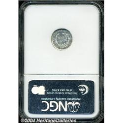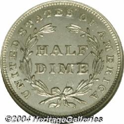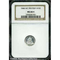 <B>1840<H10C> No Drapery MS66 <S NGC.</B></I> A needle-sharp, fully brilliant, and moderately prooflike premium Gem. Beautifully preserved, the reverse is nearly pristine and the obverse is also clean, with only a few very faint grazes in the right field. Stars were still entered by hand into the obverse die in 1840; the eighth star is repunched. The No Drapery, Stars type was only struck between 1838 and 1840, and high grade pieces are always in demand for type set purposes. Bold clash marks (as made) accompany the E in DIME. As of (9/04), the only example that has garnered a star designation from NGC for superior eye appeal. <BR><BR><B>Important notice:</B> Heritage usually auctions material at the rate of 200-250 lots per hour. On some occasions eBay Live bid software or the Internet may not be able to keep up with the pace of the auction. We recommend placing a realistic absentee bid now as insurance to avoid disappointment. Occasionally the auctioneer may eliminate or reject an eBay Live bid, and the auctioneer may also reopen a lot after the close of the eBay live bidding (usually because we missed an audience bid), and may reject your bid even if it shows you as the winning bidder. By bidding via eBay Live, you agree that Heritage may award the lot to another bidder at its sole discretion under the circumstances described above or any other reasonable circumstances. Since eBay bids are not shown to us until we open the lot on the floor, we treat those bids just like floor bids. In most cases the floor responds before the eBay bid is presented to us, due to Internet lag time, so for consistency we have made it a policy that floor bids are always considered first over tie eBay live bids. Also please note that all Heritage lots purchased through eBay Live carry a 20% Buyer's Premium. Please make sure you read the Terms and Conditions before you bid.