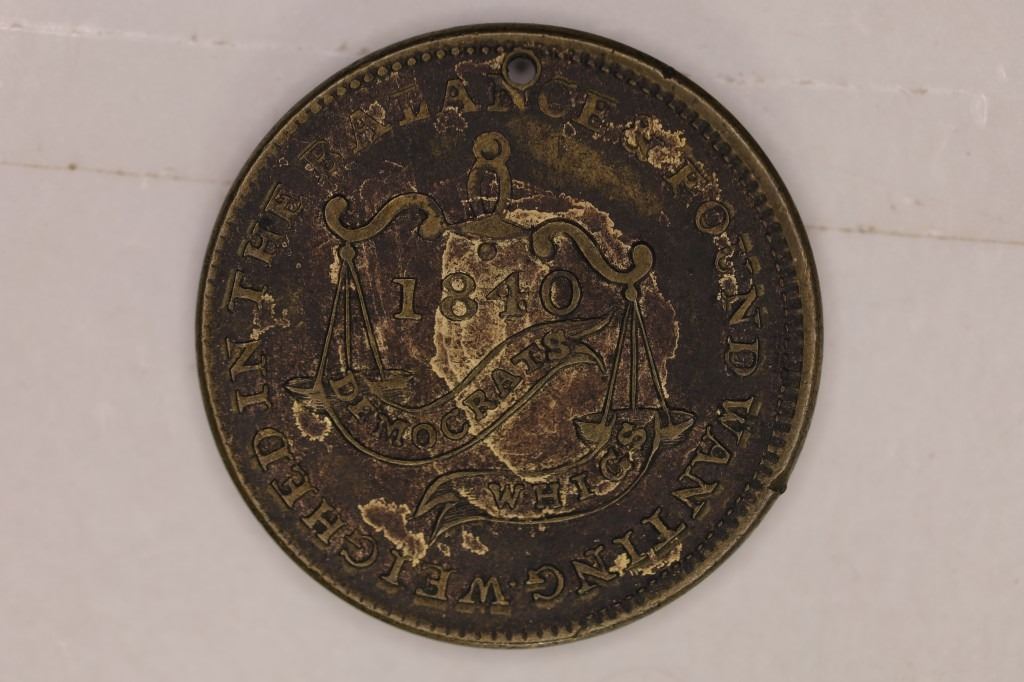 FOUNDED WANTING WEIGHED IN THE PALACE. WITH HOLE, CAMPAIGN TOKEN, HARRISON DIED 31 DAYS AFTER HIS INAUGURATION