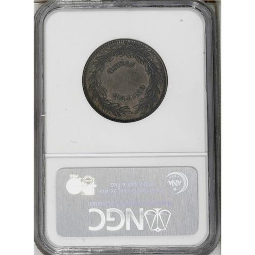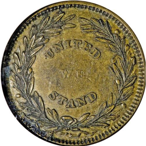 <B>(1840) Henry Clay, HT-79A, R.3, AU55 NGC.</B></I> Brass. Deep brown patina with a wavy thread-like strike-through in the center of the obverse.<BR><I>From The Troy Wiseman Collection.</B></I>