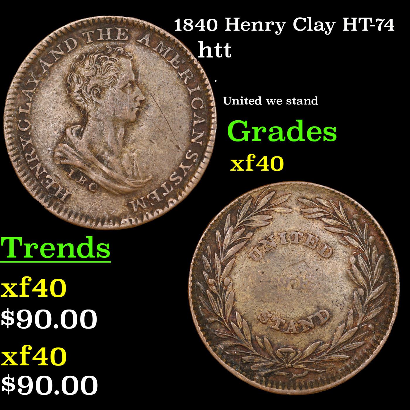 1840 Henry Clay HT-74 Hard Times Token 1c Grades xf.