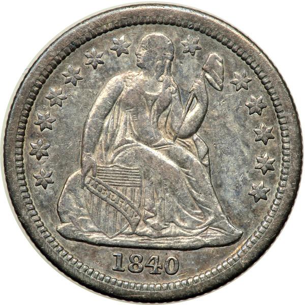 1840 Liberty Seated Dime. Drapery. EF-45. Nice original toning with semi reflective surfaces. Scarce.