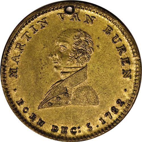 <B>1840 Martin Van Buren, HT-A800, R.3, Uncirculated, Uncertified.</B></I> Holdered as issued. This very high grade token is unpriced in the Rulau reference catalog above the grade of Very Fine. This piece exhibits a full, sharp strike with much of the original mint luster remaining. This remarkable token would make a great addition to one's American political collection. The current market value is approximately $150-$250.<BR><BR><b>Shipping:</b> Coin/Currency (<a target="_blank" href="http://www.heritageauctions.com/common/shipping.php">view shipping information</a>)