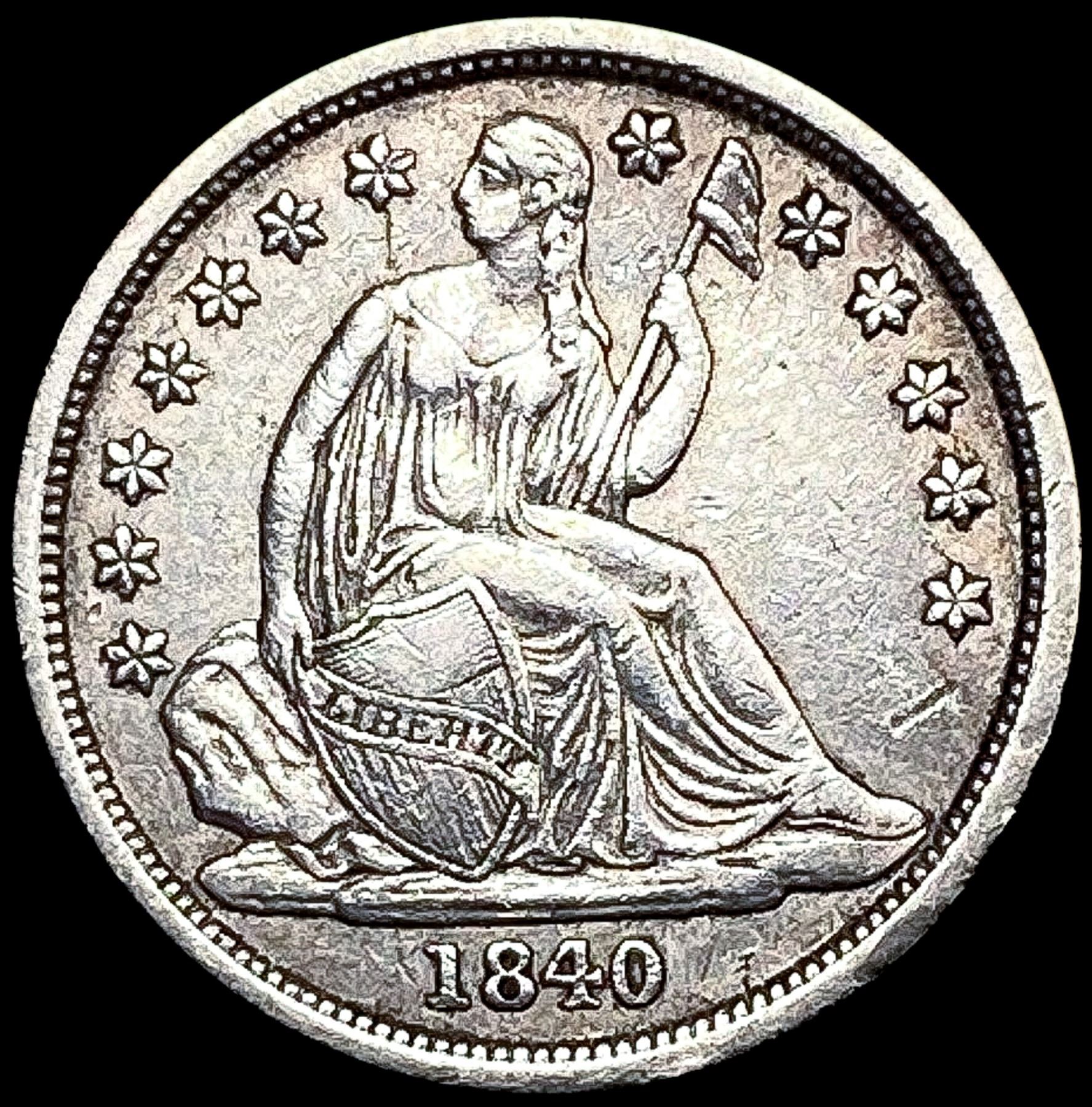 1840 No Drapery Seated Liberty Dime NEARLY UNCIRCU
