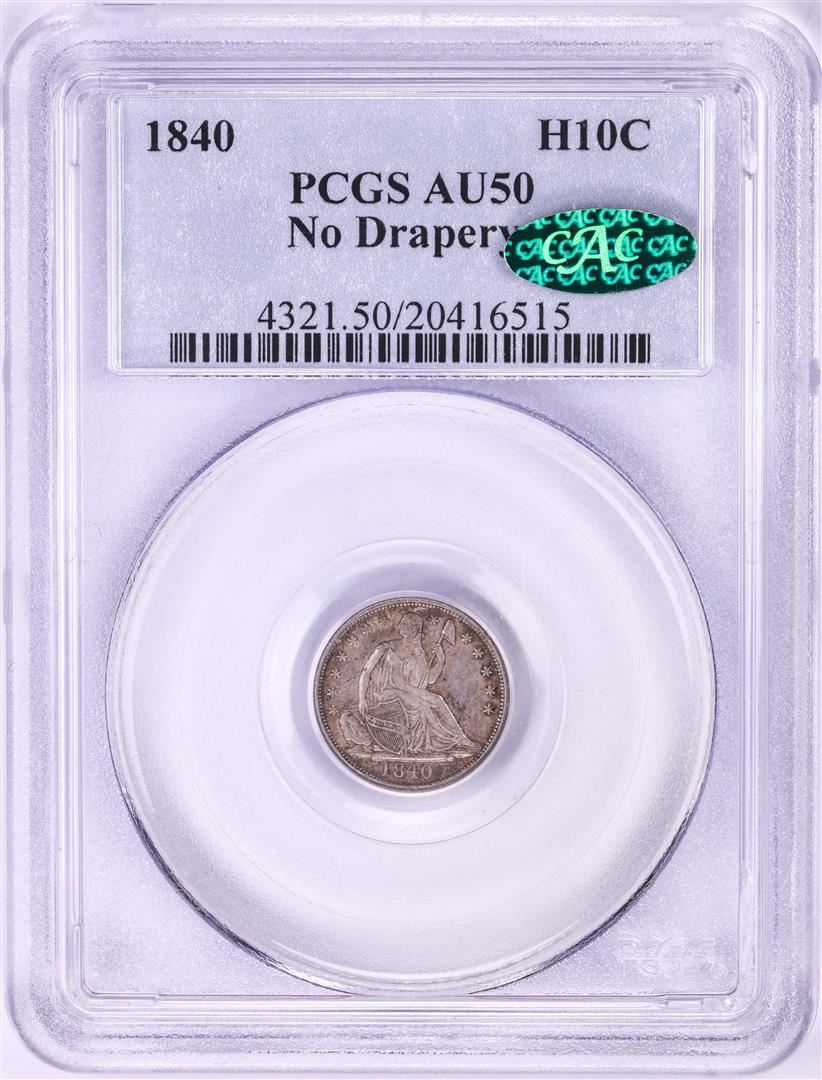 One 1840 No Drapery Seated Liberty Half Dime Coin PCGS AU50 CAC. PCGS Graded.