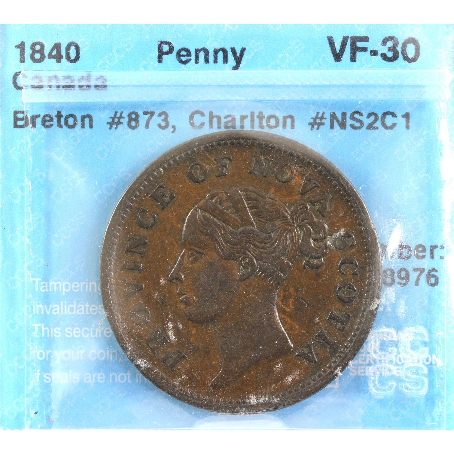 1840 Nova Scotia Penny Token CH# NS2C1 BR# 873 CCCS Certified VF-30.