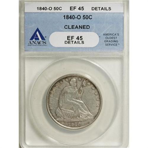 <B>1840-O 50C --Cleaned--ANACS. XF45 Details.</B></I> NGC Census: (5/44). PCGS Population (8/36). Mintage: 855,100. Numismedia Wsl. Price for NGC/PCGS coin in XF45: $185. (#6235)<BR><BR><B>Coin Engraver:</B> Christian Gobrecht<BR><BR><b>Shipping:</b> Coins & Currency (<a target="_blank" href="http://www.heritageauctions.com/common/shipping.php">view shipping information</a>)