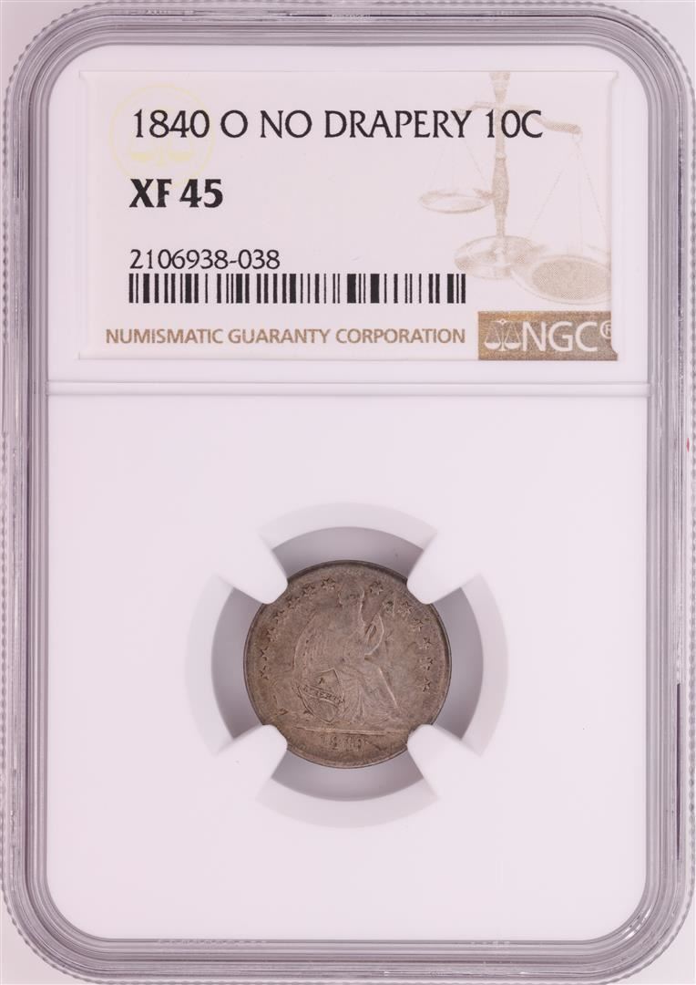 One 1840-O No Drapery Seated Liberty Dime Coin NGC XF45. NGC Certified.