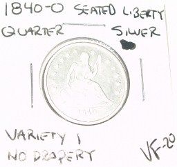 1840-O SEATED LIBERTY SILVER QUARTER DOLLAR VARIETY 1 NO DRAPERY *RARE VERY FINE-20 GRADE* HARD TO FIND COIN!! ***Coin & Currency Grades, Conditions and Values are not Northern Colorado Estate Liquidators Responsibilty. Grades, Condition and Values are determined by Consigner(s) & Buyers ONLY***