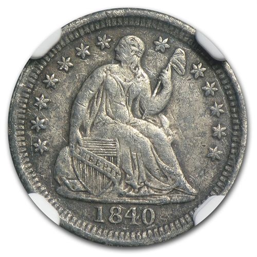 1840-O W/Drapery Liberty Seated Half Dime NGC-AU Detail **|**|** Year: 1840 ; Mint Mark: AU Details ; Grade: O - New Orleans ; Denomination: $0.05 ; MSRP: $600