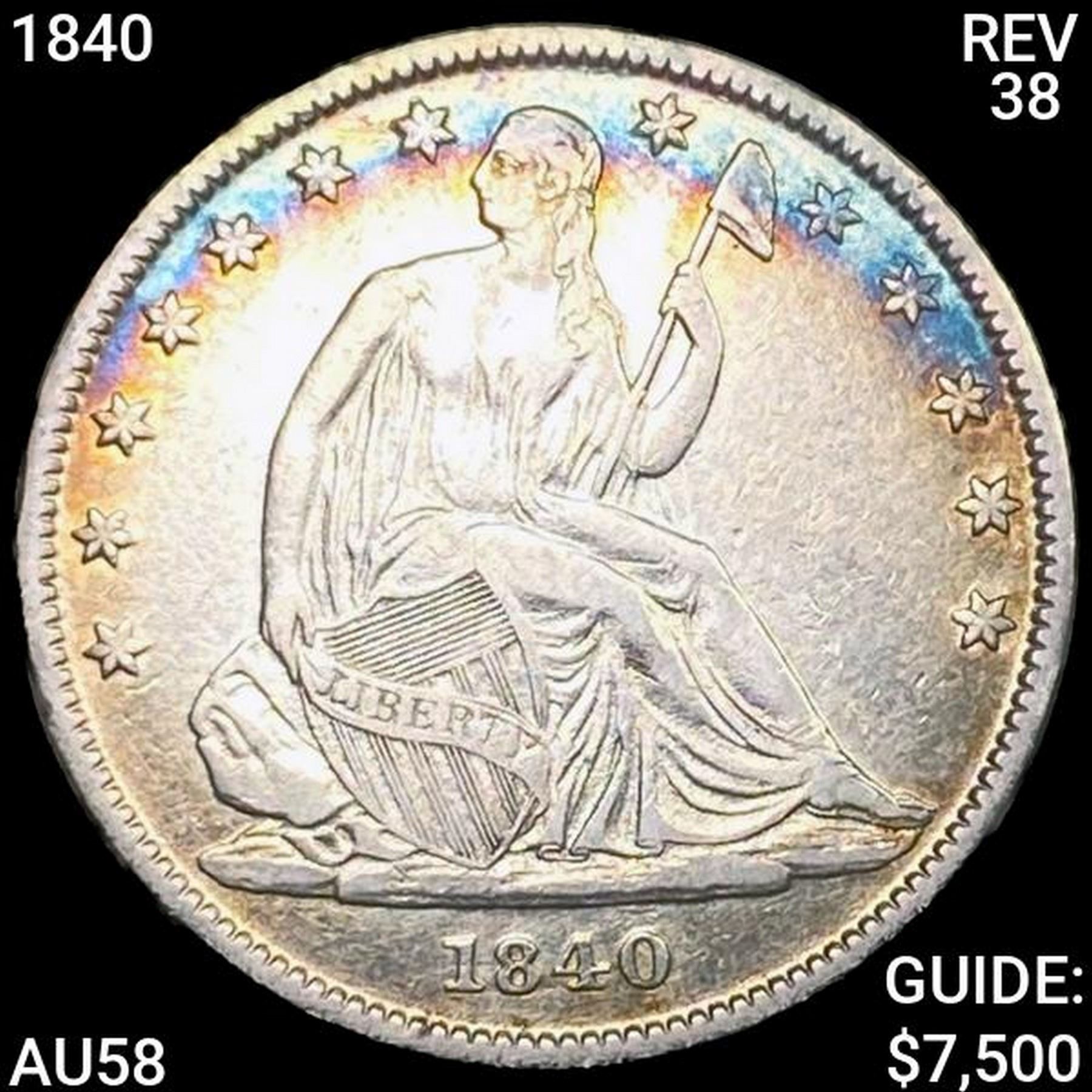 1840 REV 38 Seated Liberty Half Dollar CHOICE AU