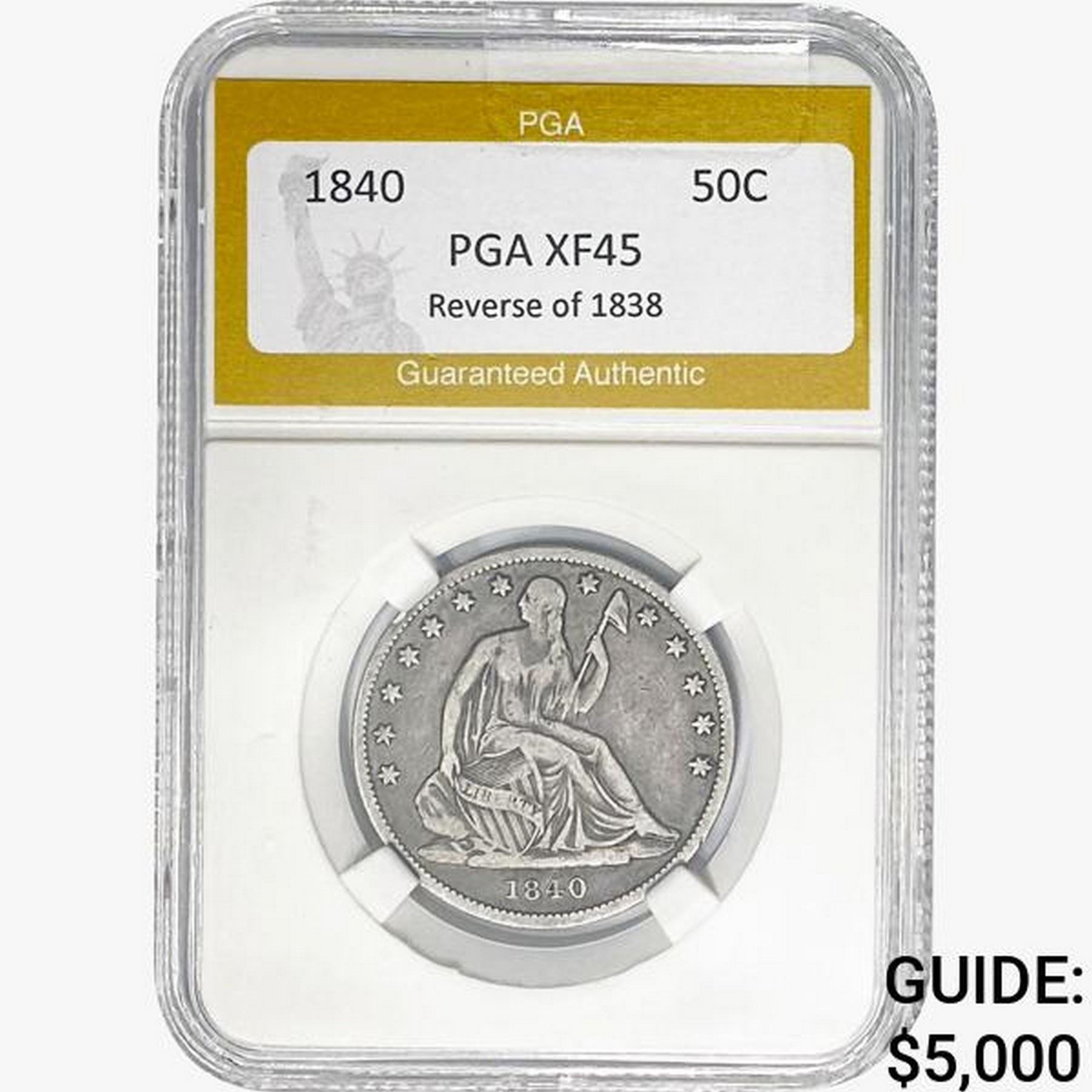 1840 REV 38 Seated Liberty Half Dollar PGA XF45 FALSE