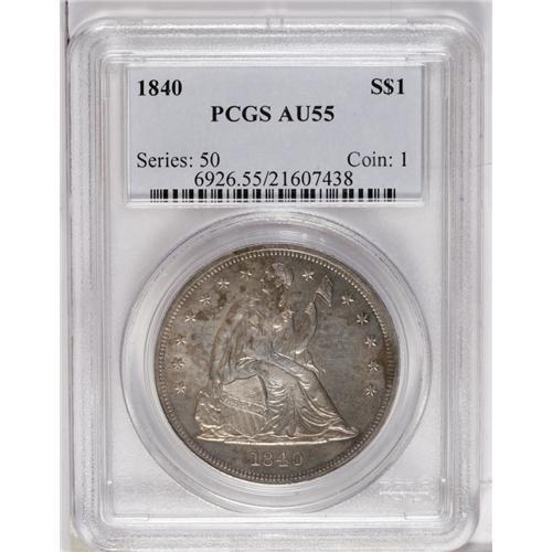 1840 S$1 AU55 PCGS. The Mint produced only 61,005 busi