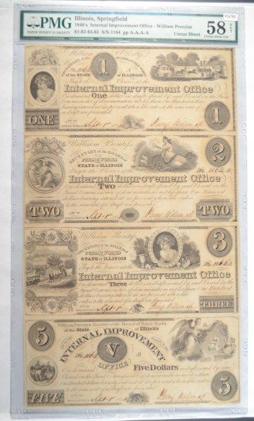 1840'S SPRINGFIELD, ILLINOIS INTERNAL IMPROVEMENT OFFICE UNCUT SHEET, ABE