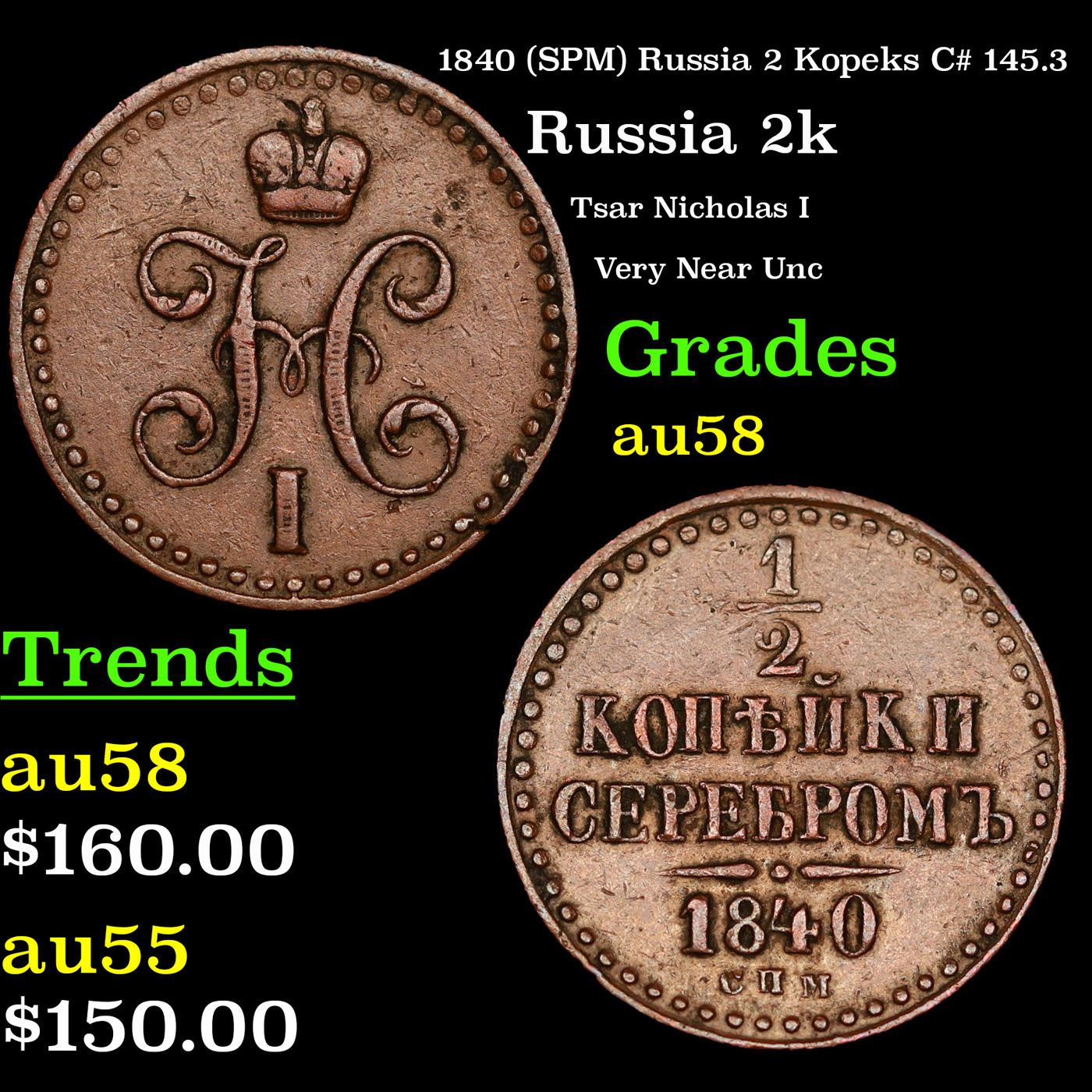 1840 (SPM) Russia 2 Kopeks C# 145.3 Grades Choice AU/BU Slider.