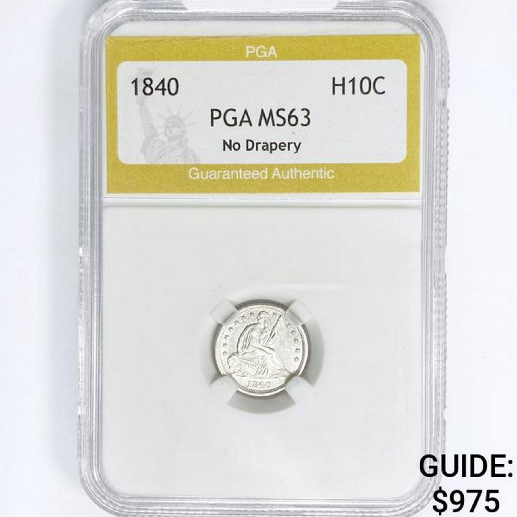 1840 Seated Liberty Half Dime PGA MS63 No Drapery